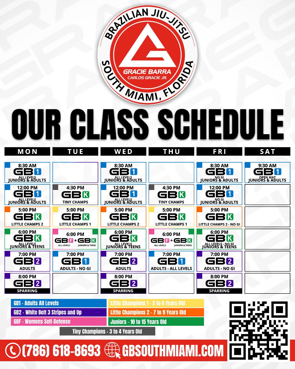 Please review the schedule below to find the best class times that fit smoothly into your daily routine. Whether you’re balancing school, family, or other activities, we offer a variety of time slots to make sure you can train consistently and comfortably.